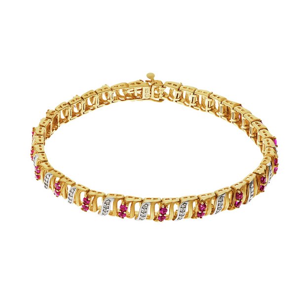 Buy Gold Plated Silver Created Ruby and Diamond Bracelet at Argos.co.uk